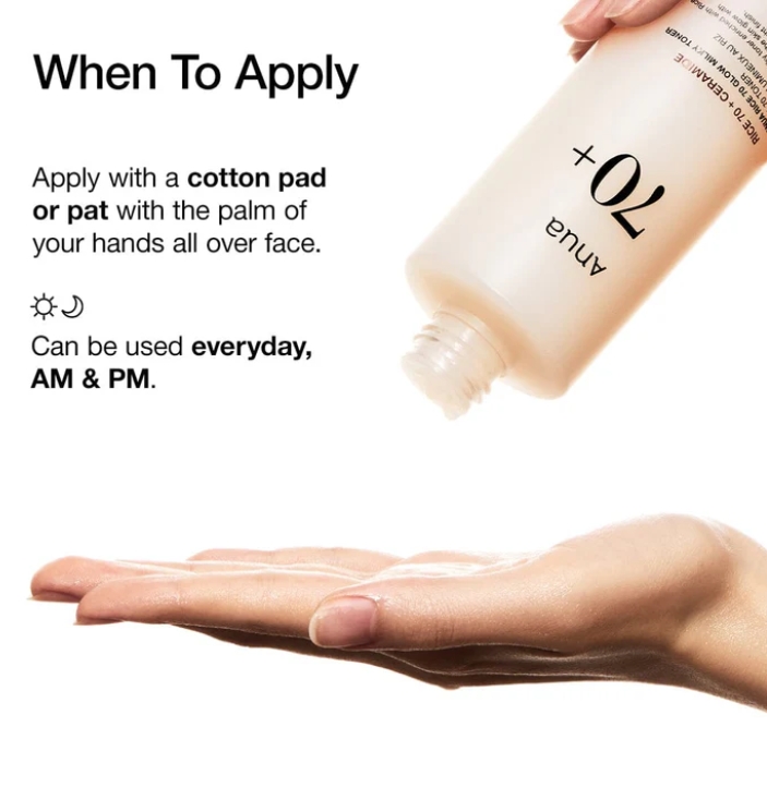 After cleansing, apply the toner using a cotton pad or fingertips.